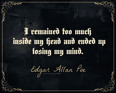 February 12, 2014February 11, 2014 In The Words Of Edgar Allan Poe Finding your calling, Inspirational Quotes, Meaning of Life, Thoughts On Writing, No Comments Published by mlkilian View all posts by mlkilian Are all writers mad?, Edgar Allan Poe - a quote to consider, Quotes by fact Share this: Click to share on Facebook (Opens in new window) Facebook Click to share on X (Opens in new window) X Click to share on Pinterest (Opens in new window) Pinterest Click to share on LinkedIn (Opens in new window) LinkedIn Click to email a link to a friend (Opens in new window) Email Click to share on Tumblr (Opens in new window) Tumblr Tell me truthfully, authors of all types, is this true? I’ve heard it often and read proof that most author tend to lose it, remaining too much inside their heads. Like Loading... Related