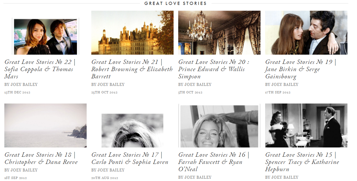 So you can imagine my curiosity when I stumbled upon this wonderful blog detailing love stories upon love stories to consider: